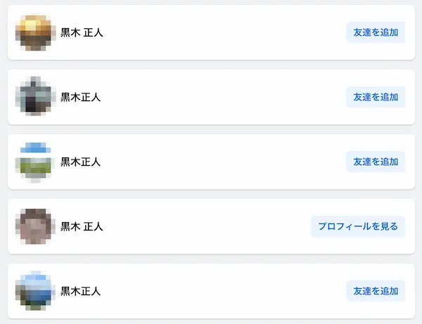 Facebookで「黒木正人」を検索すると、16件の同姓同名のアカウントが見つかりました。